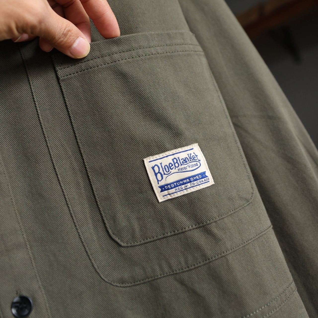 胸元の大きなポケットと切り替えデザインが目を引く一着です。