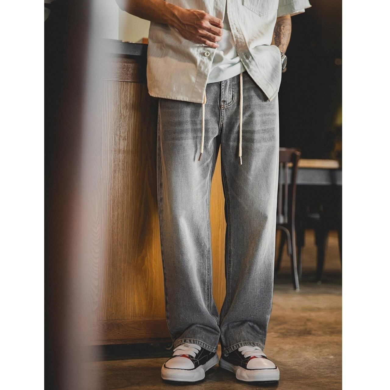 ゆったりとしたストレートシルエットが特徴のデニムパンツ。