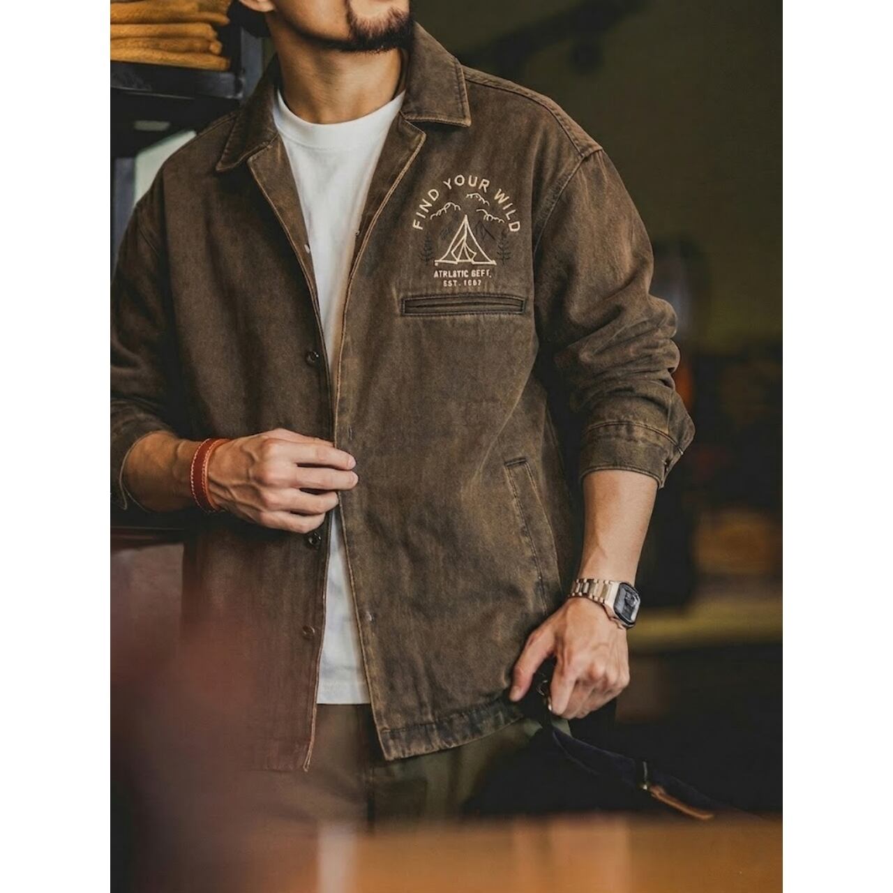 胸元にキャンプテントのグラフィックをあしらった、ヴィンテージ感のあるジャケットです。