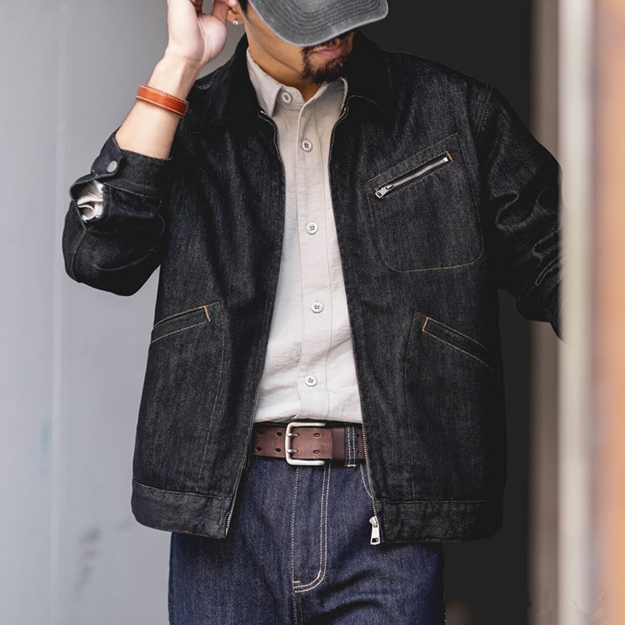胸元のジップポケットやステッチがアクセントになった、ワークテイスト漂うジャケットです。