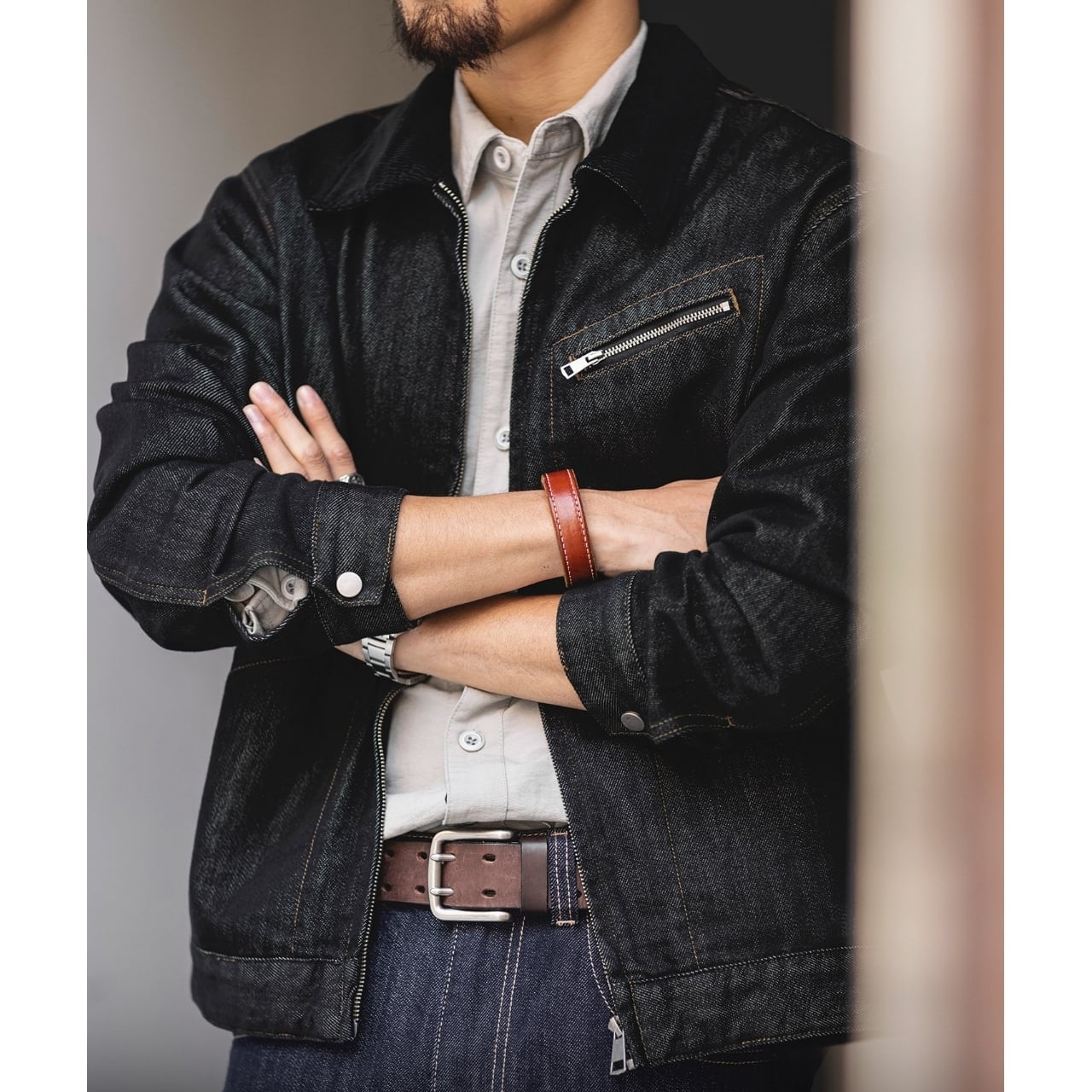 シンプルなシャツやお手持ちのボトムスに合わせるだけで、毎日のコーディネートがすっきりとまとまります。