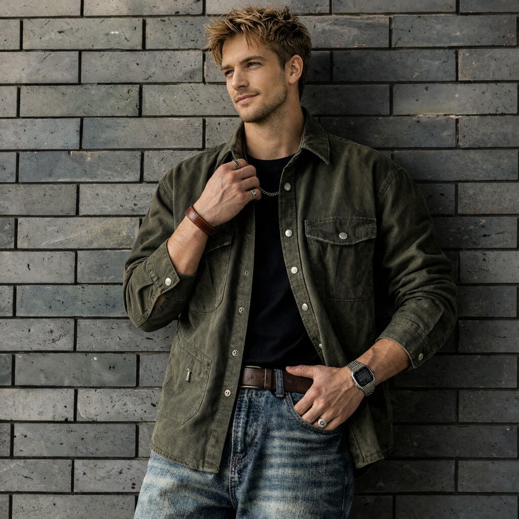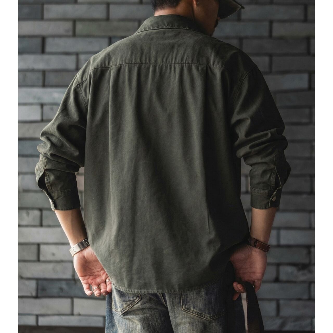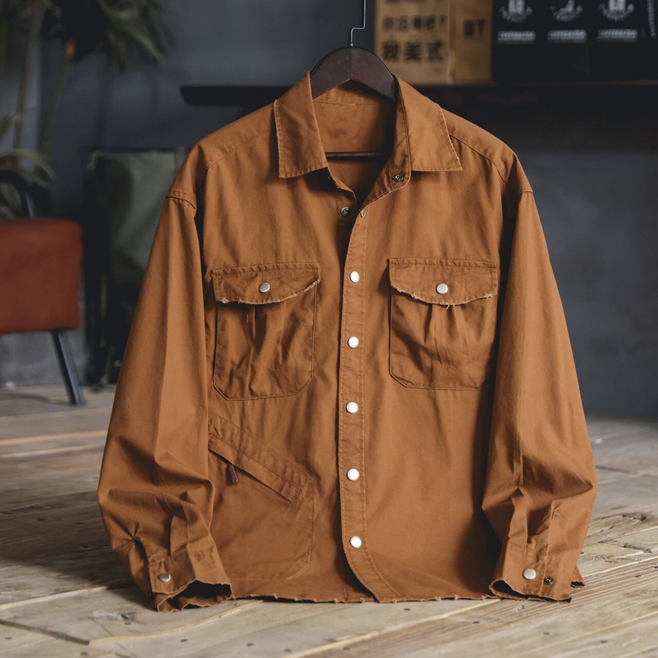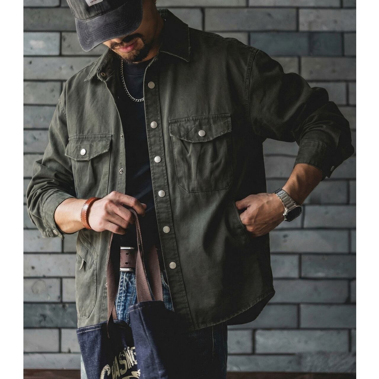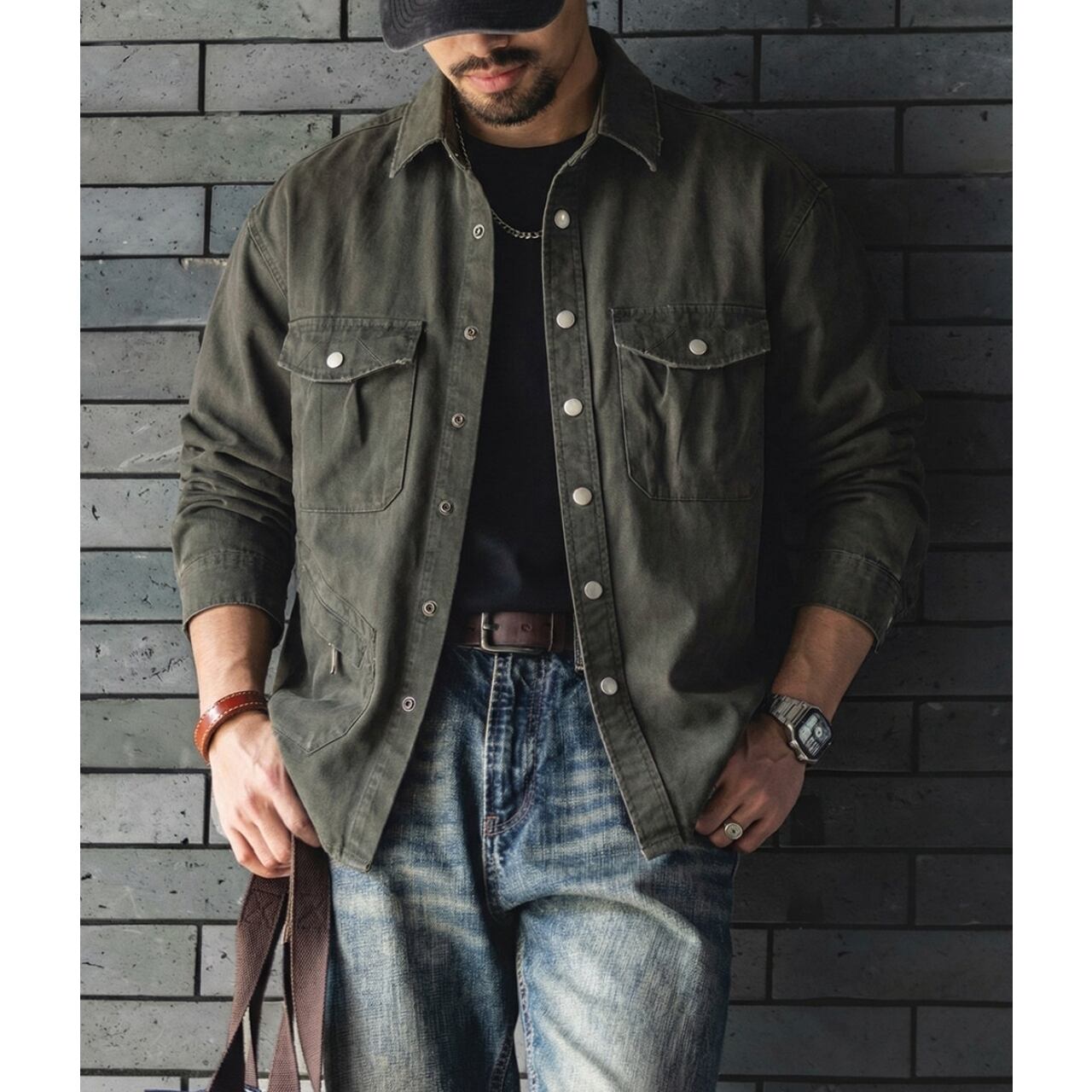 ゆったりとしたシルエットで、Tシャツの上に羽織るだけで男らしいレイヤードスタイルが完成します。