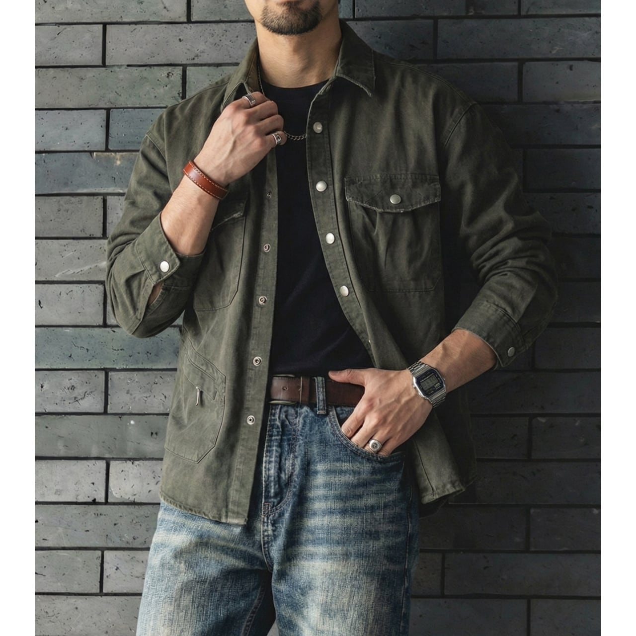 ヴィンテージのような独特の風合いがあり、いつものデニムやチノパンに合わせるだけでこなれた雰囲気を楽しめます。