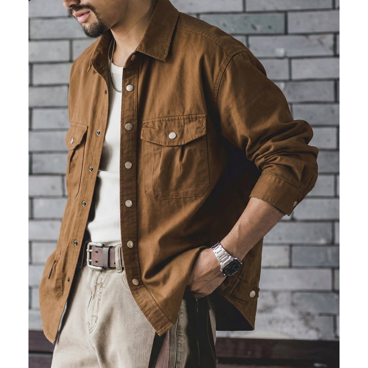 一枚で羽織るのはもちろん、インナーとのレイヤードスタイルも楽しめる一着です。