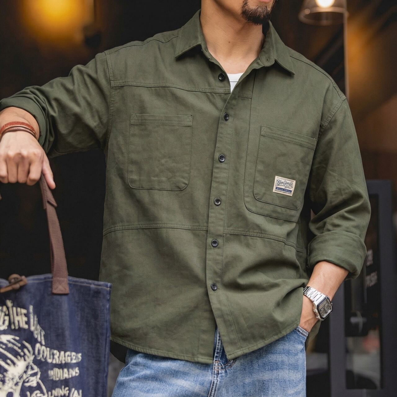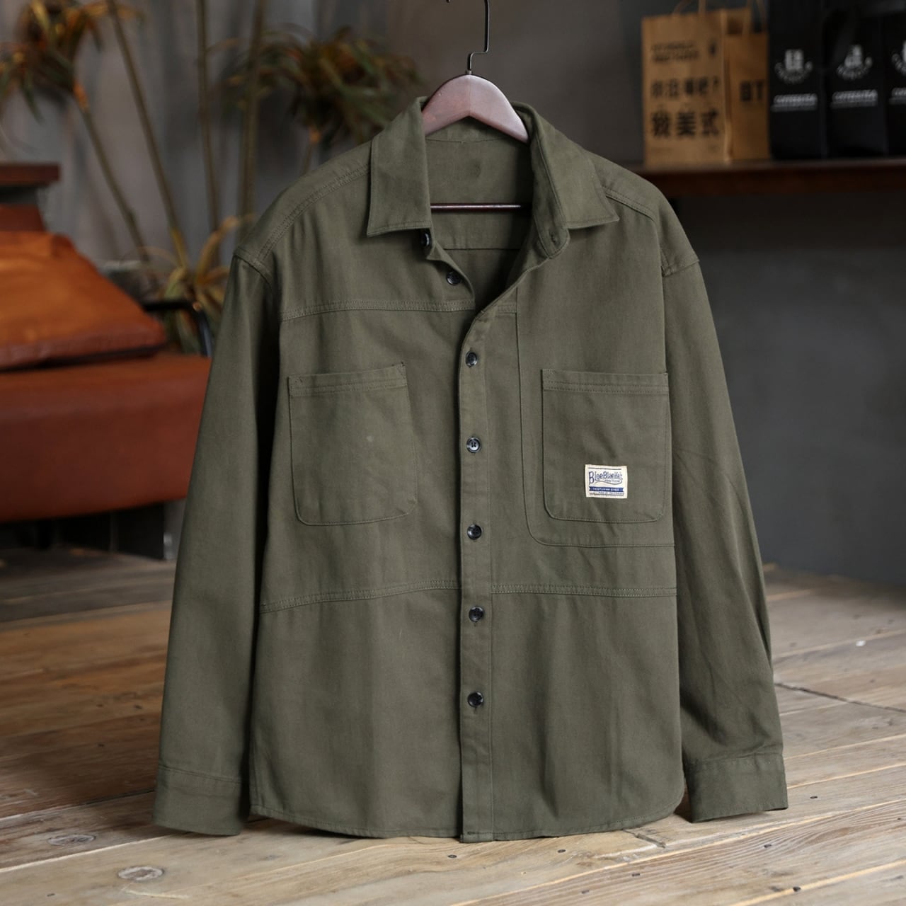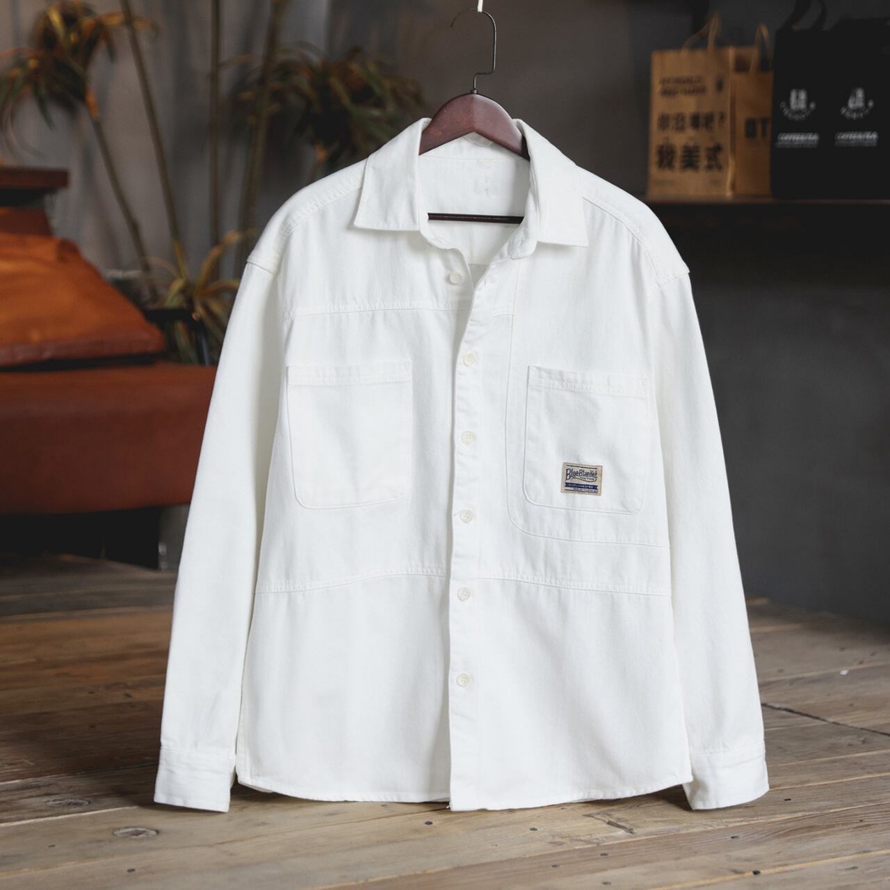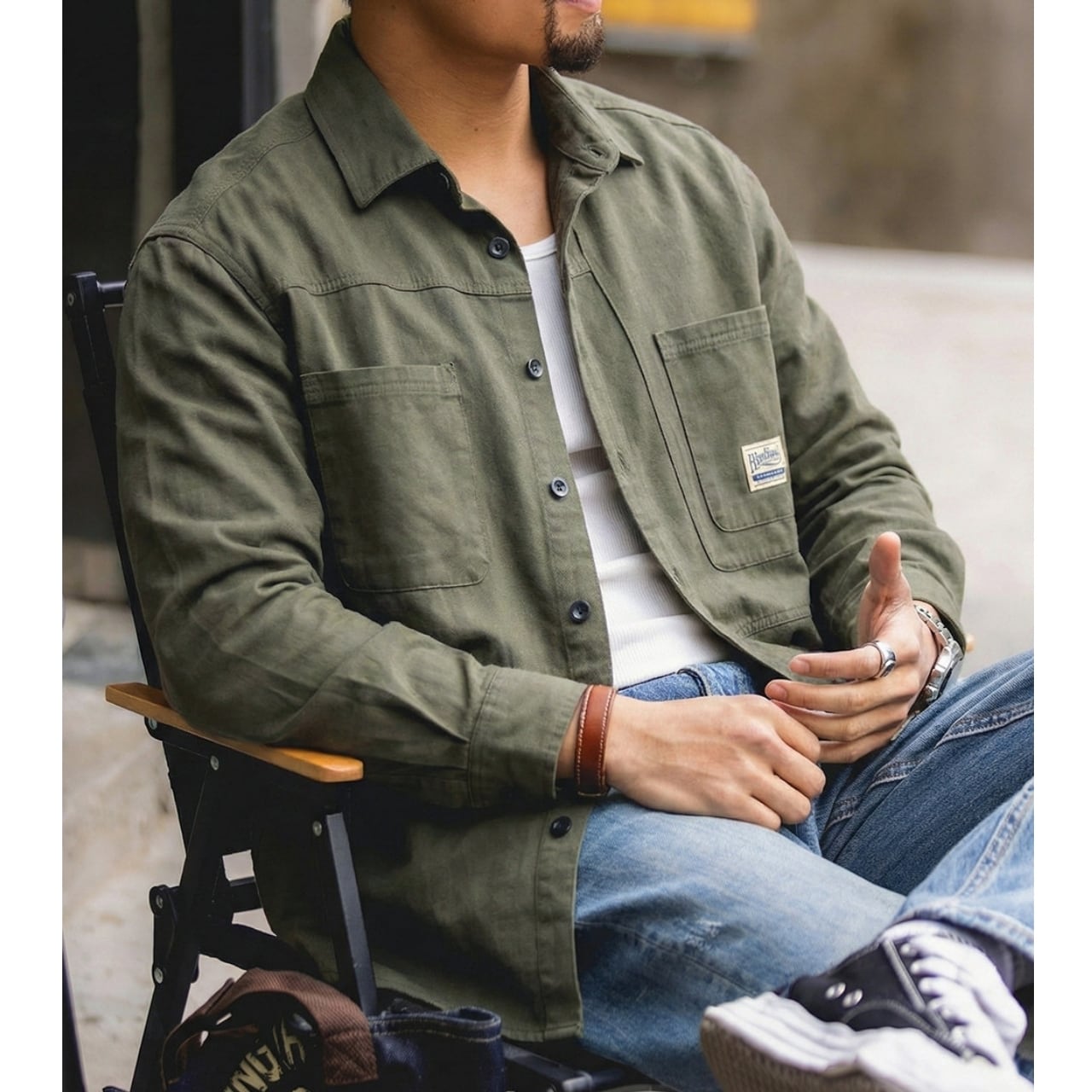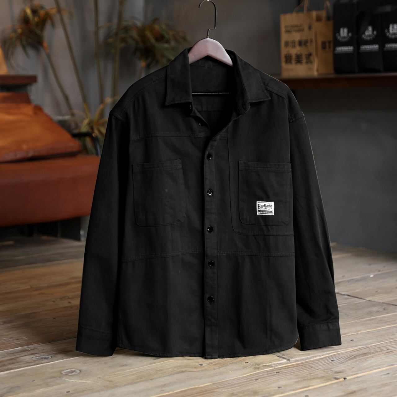 胸元の大きなポケットと切り替えデザインが目を引く、存在感のあるシャツ。