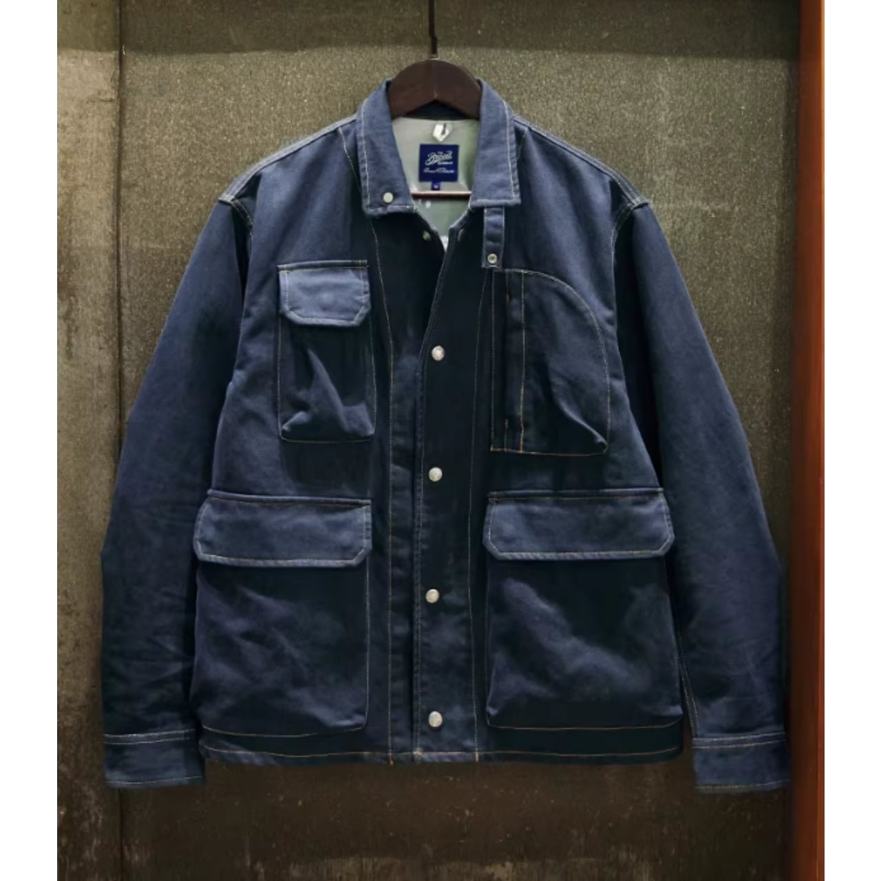 胸元と腰にある4つの大きなポケットが目を引くデザインです。