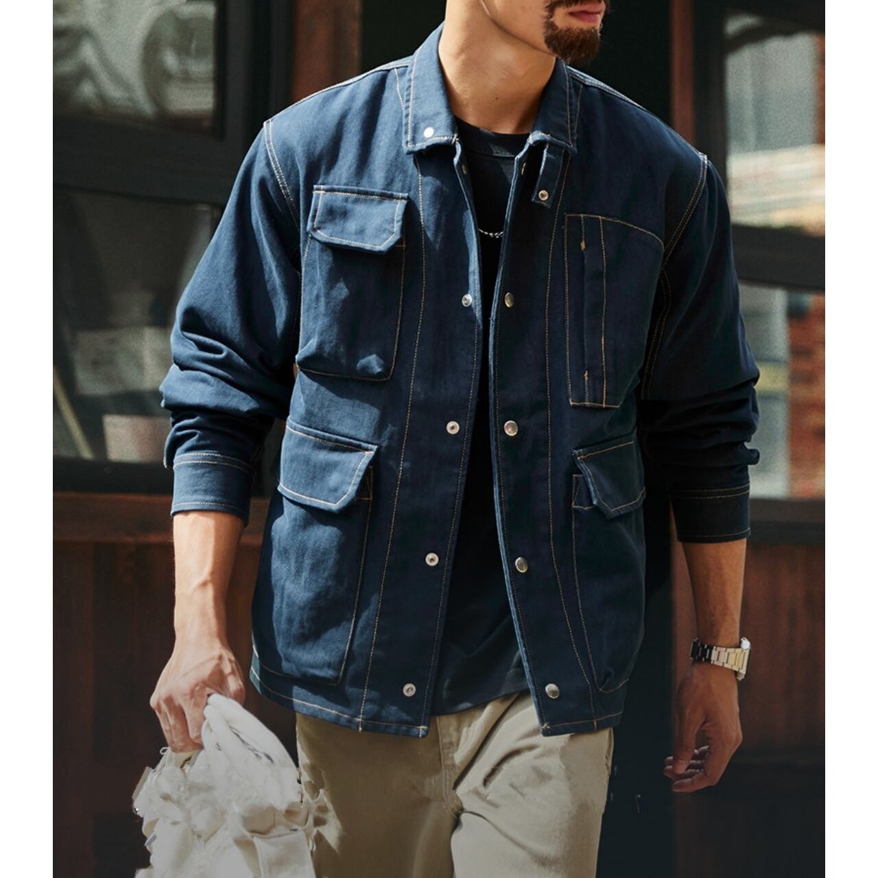 全体に施されたステッチがアクセントになり、いつものコーディネートに個性をプラスしてくれます。