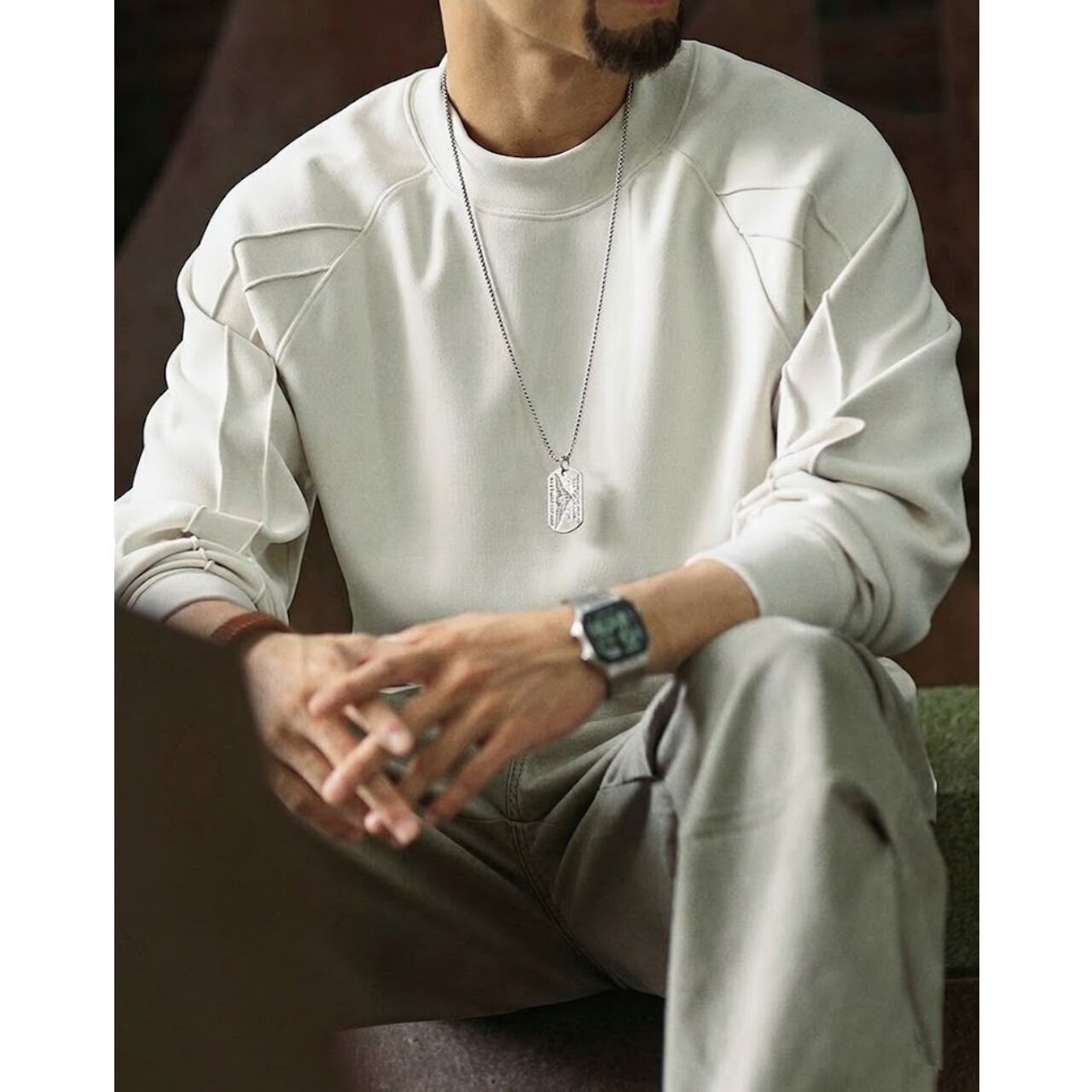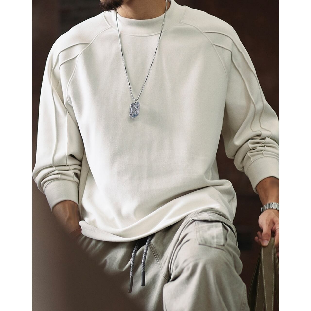 一枚で着ても存在感があり、ゆったりとしたシルエットがリラックスした雰囲気を演出します。
