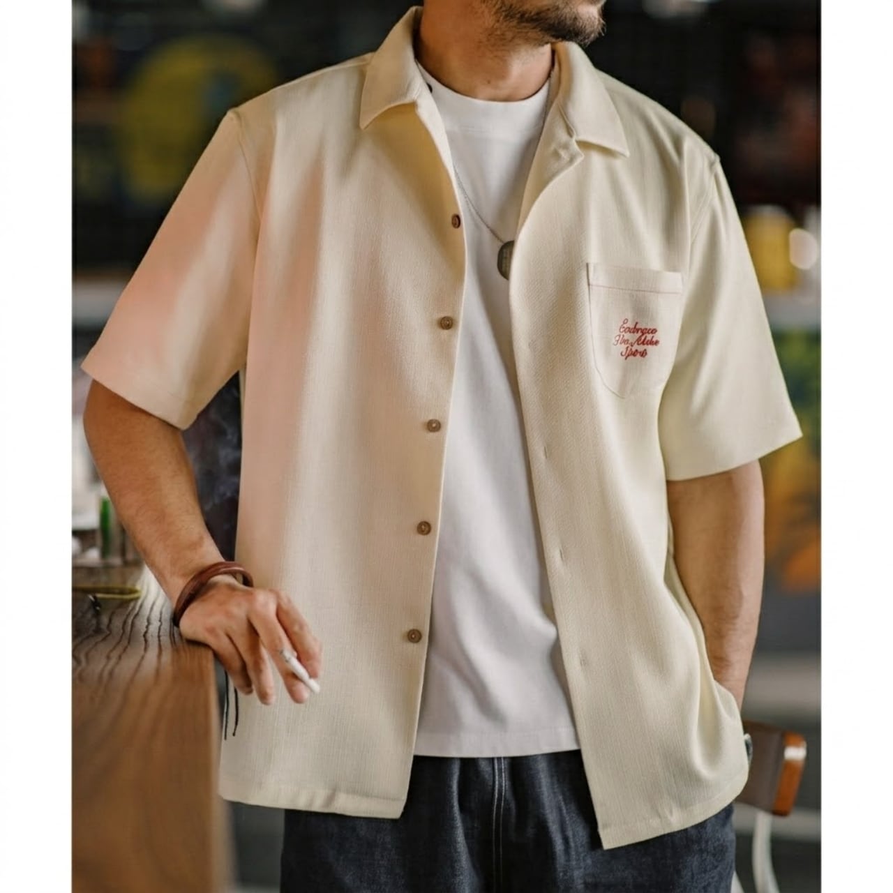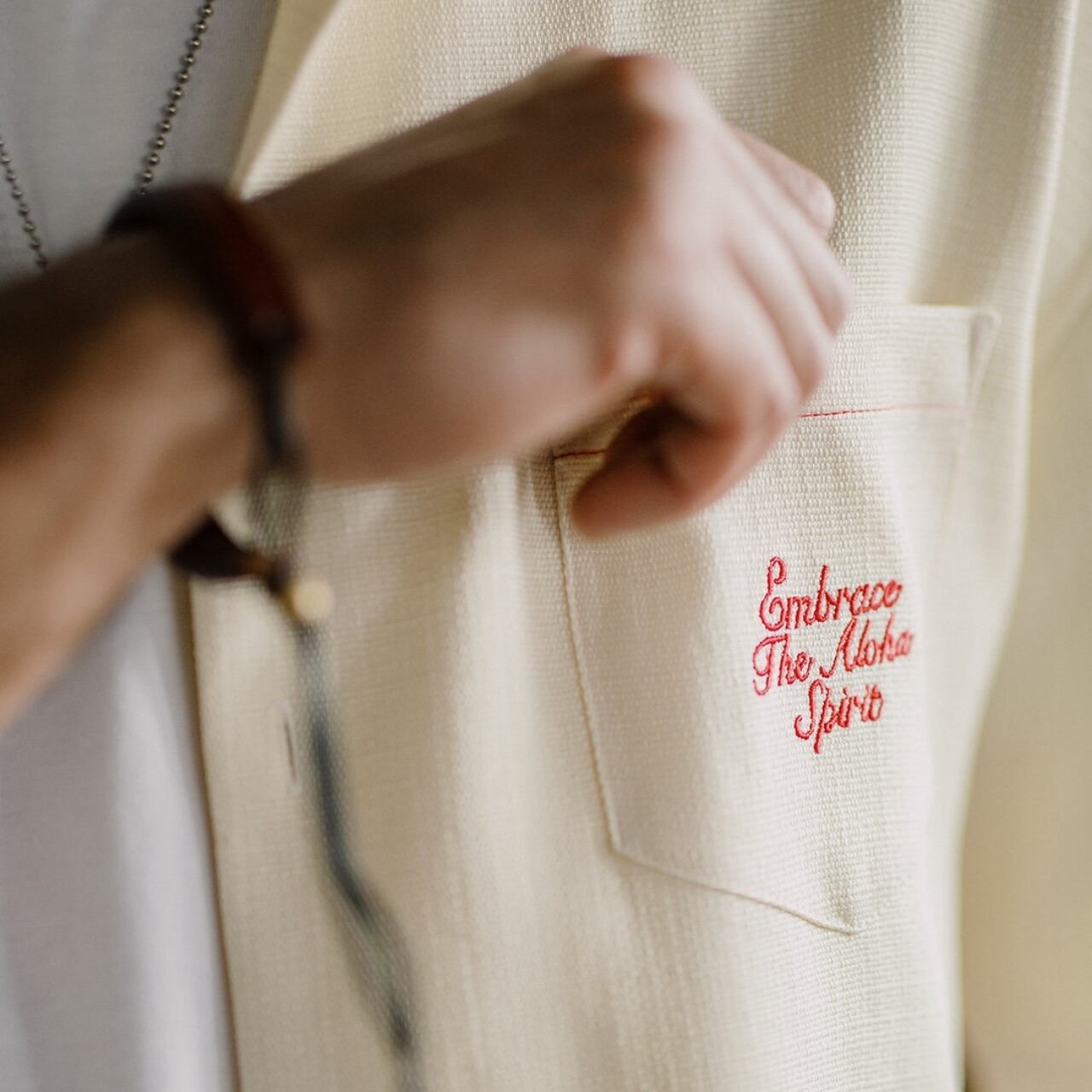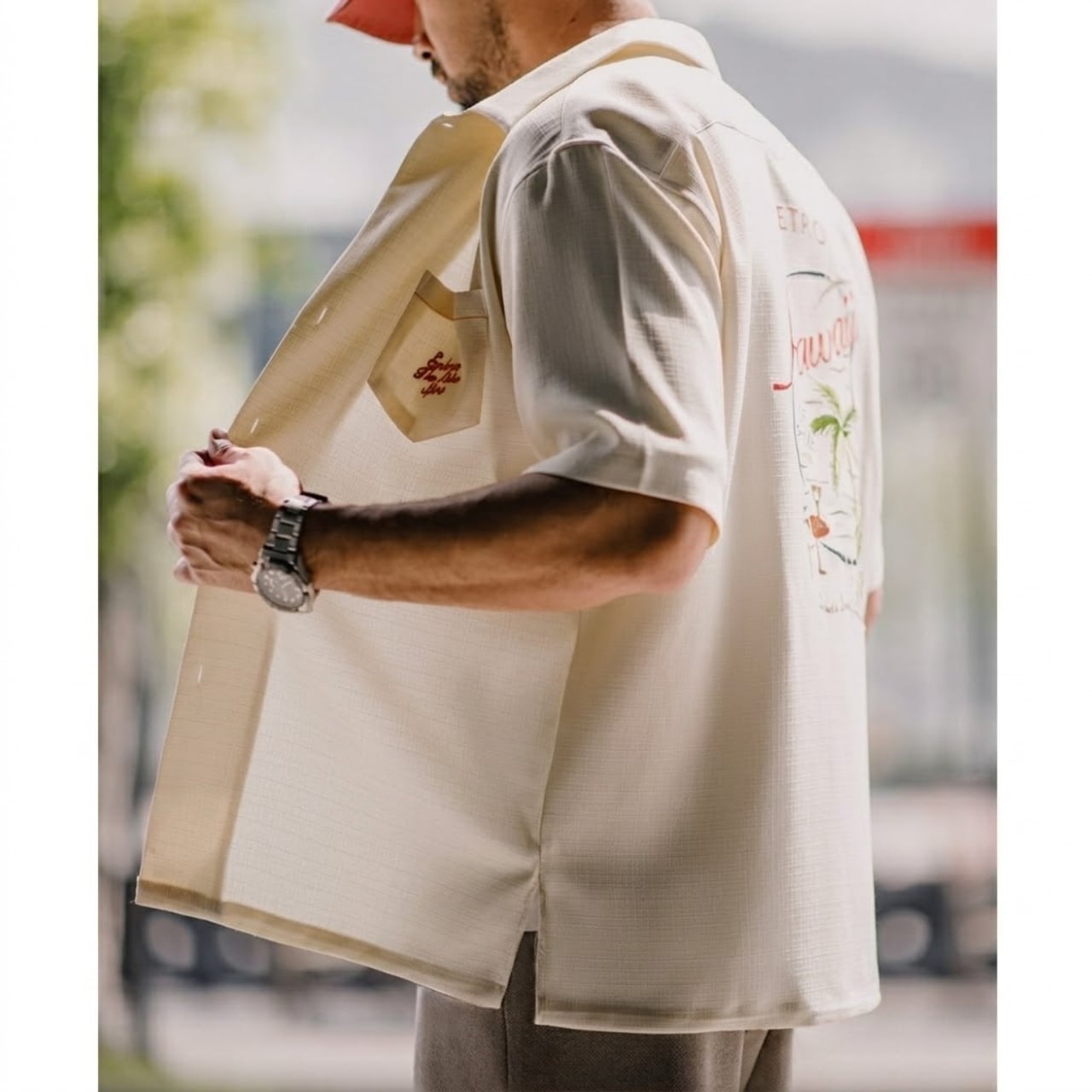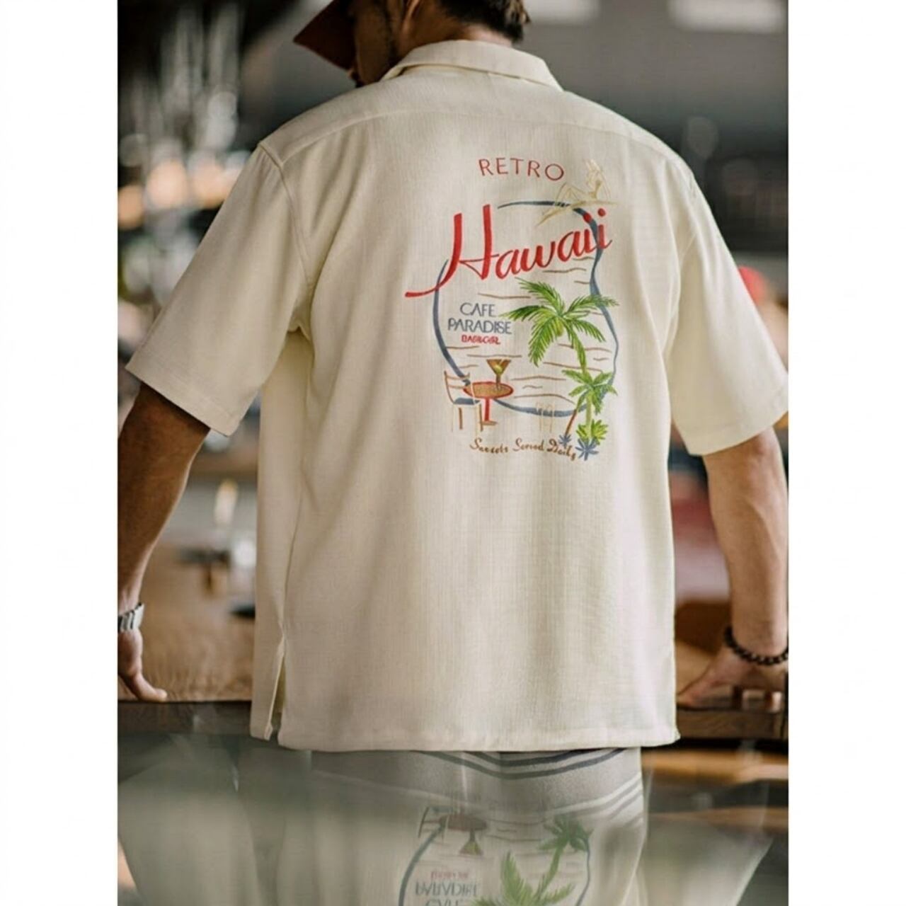 背面に大きく描かれたハワイのグラフィックが目を引くシャツです。