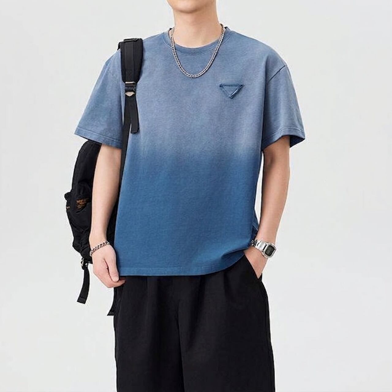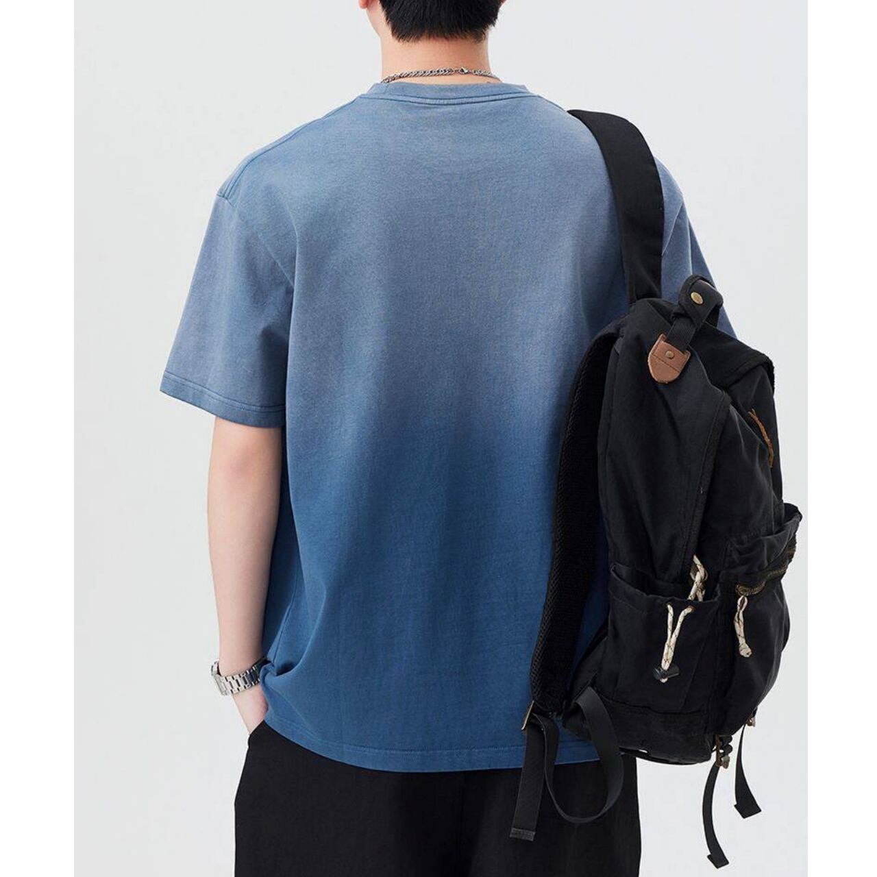 上下で変化するグラデーションのデザインが印象的なTシャツです。