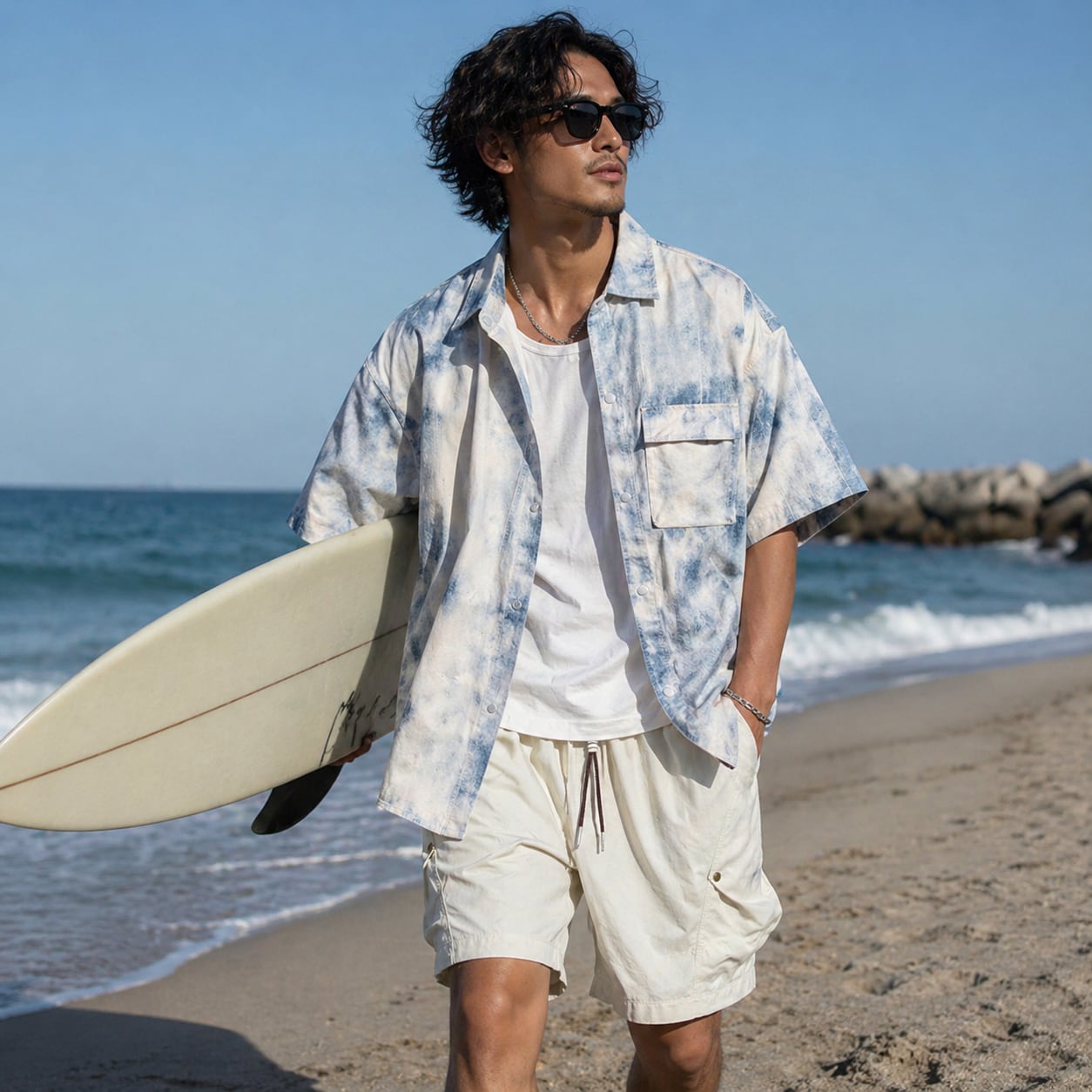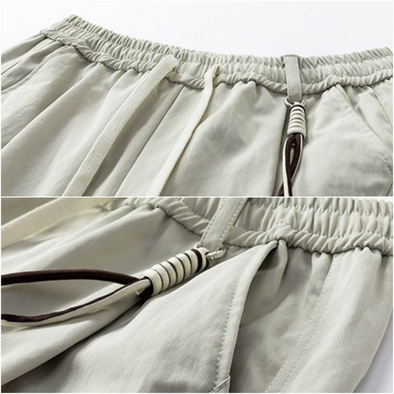 ウエストはゴムと紐で調整しやすく、リラックスして過ごしたい日にぴったりのハーフパンツ。