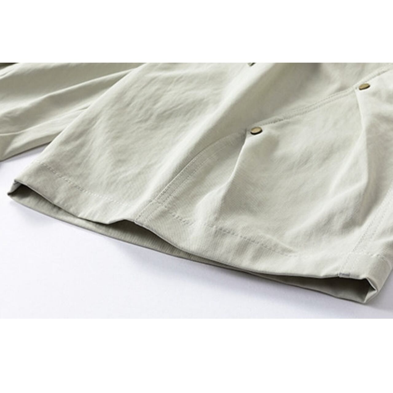 ゆったりとしたシルエットに、大きなポケットが目を引くデザインです。