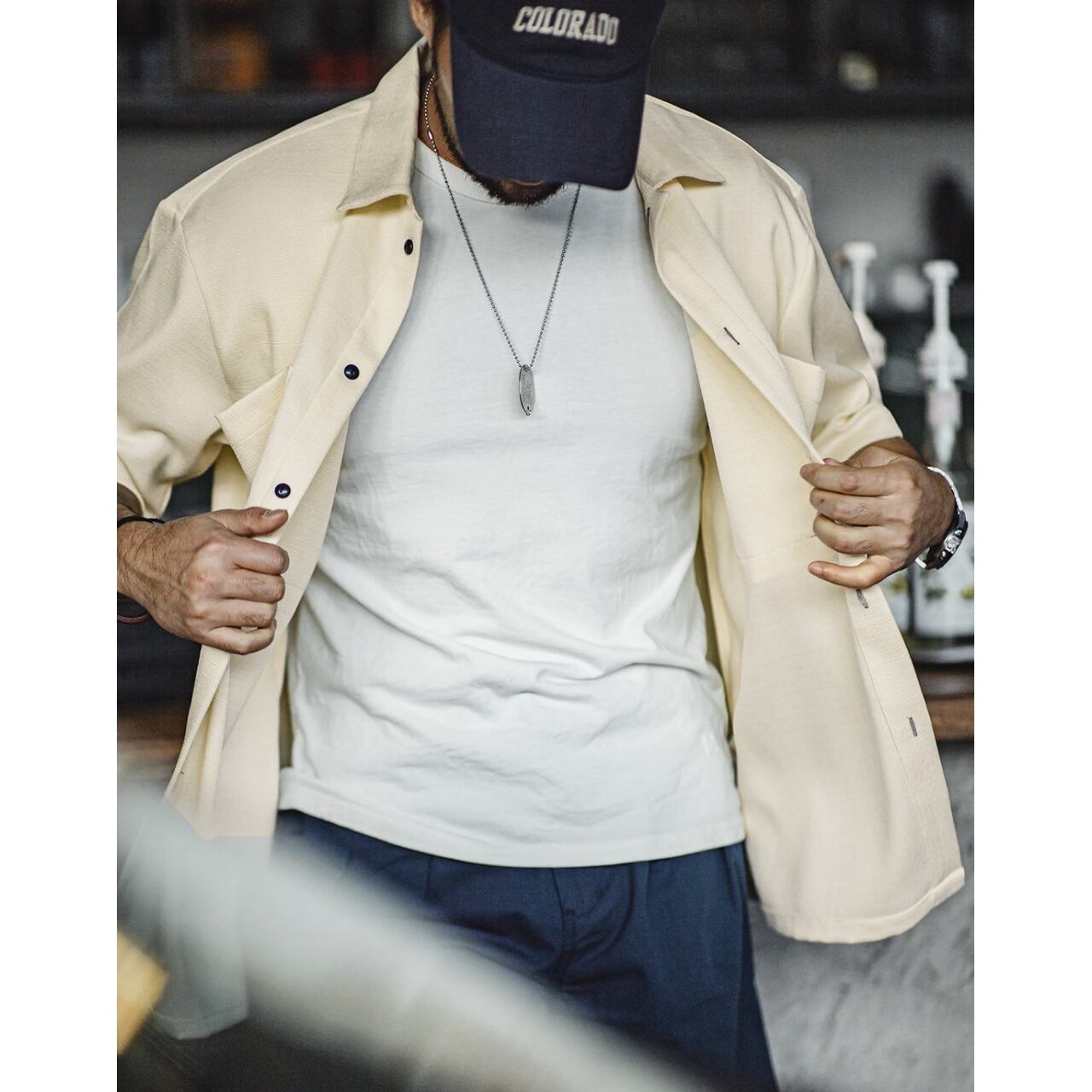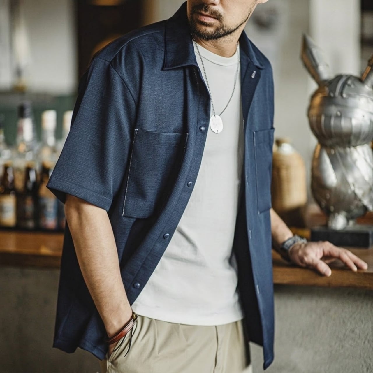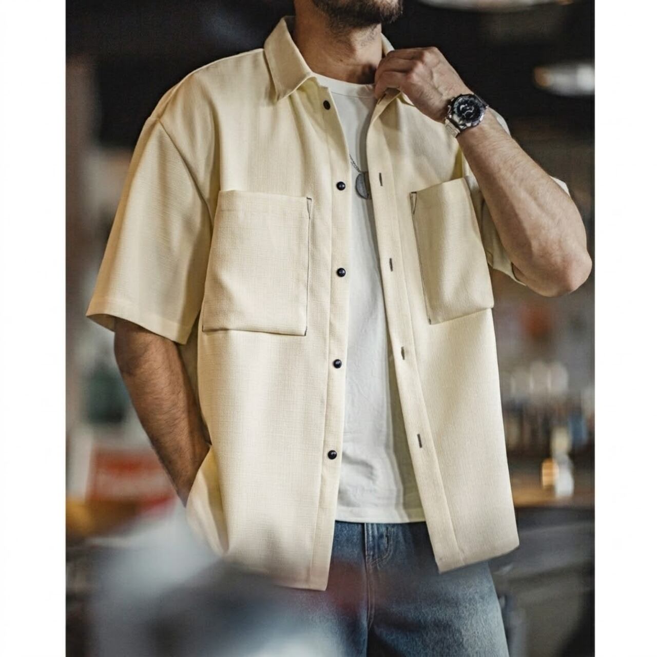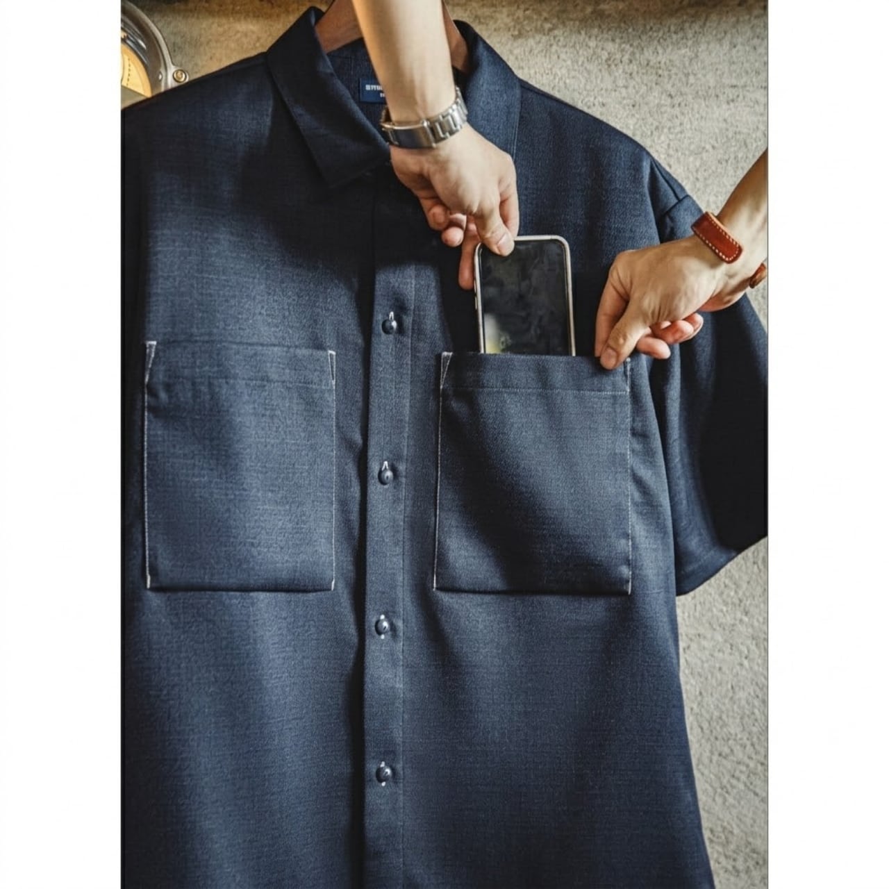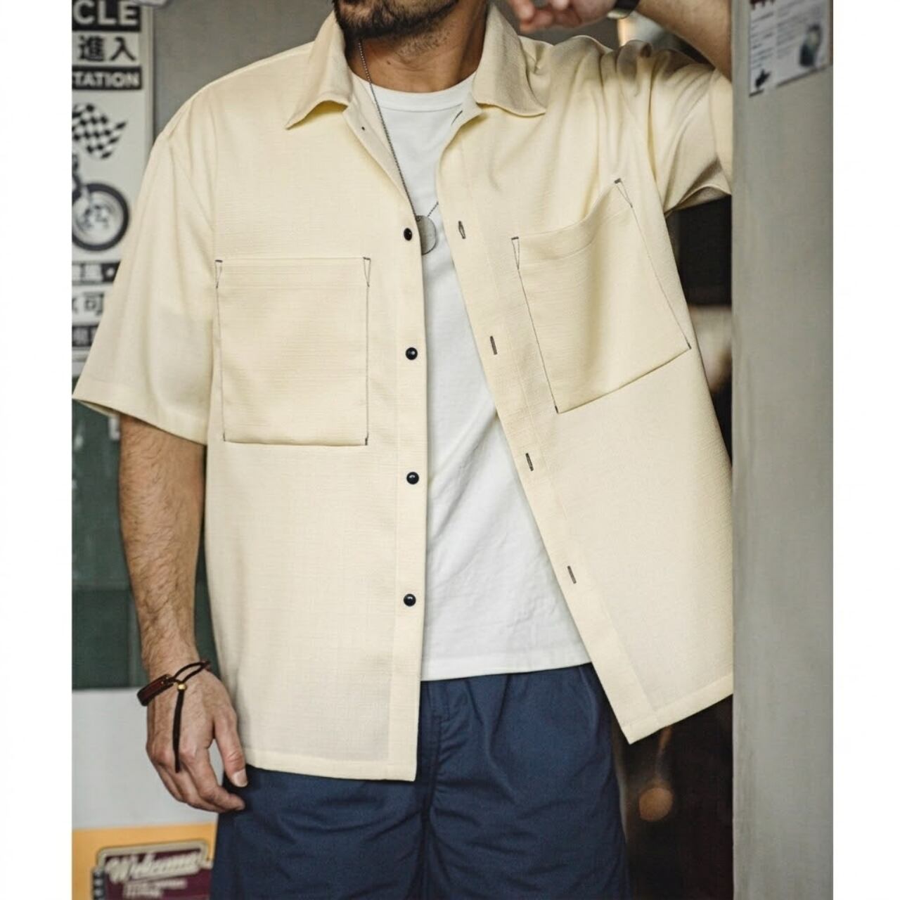 胸元にある2つの大きなポケットが目を引くシャツです。