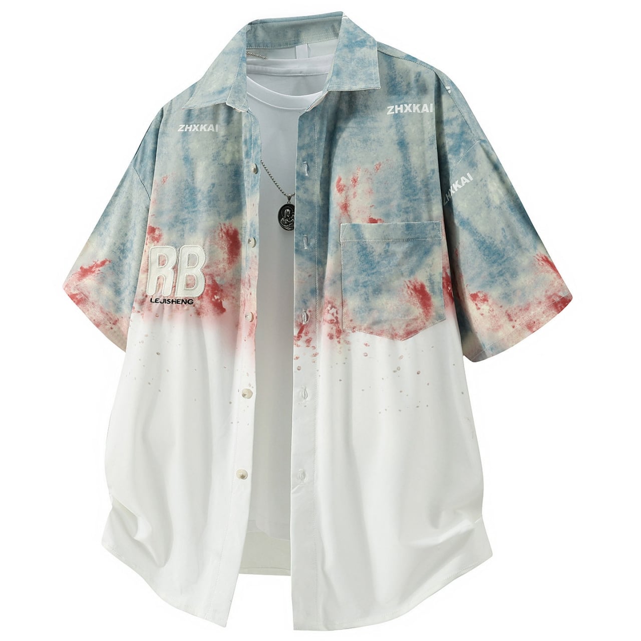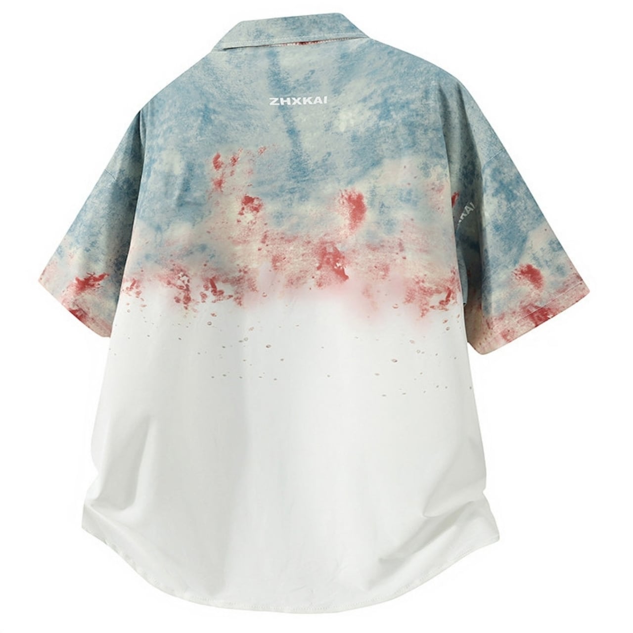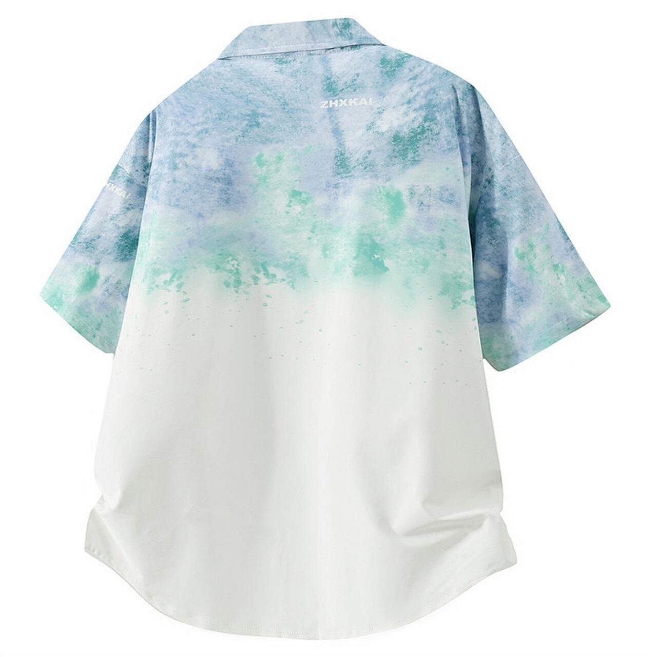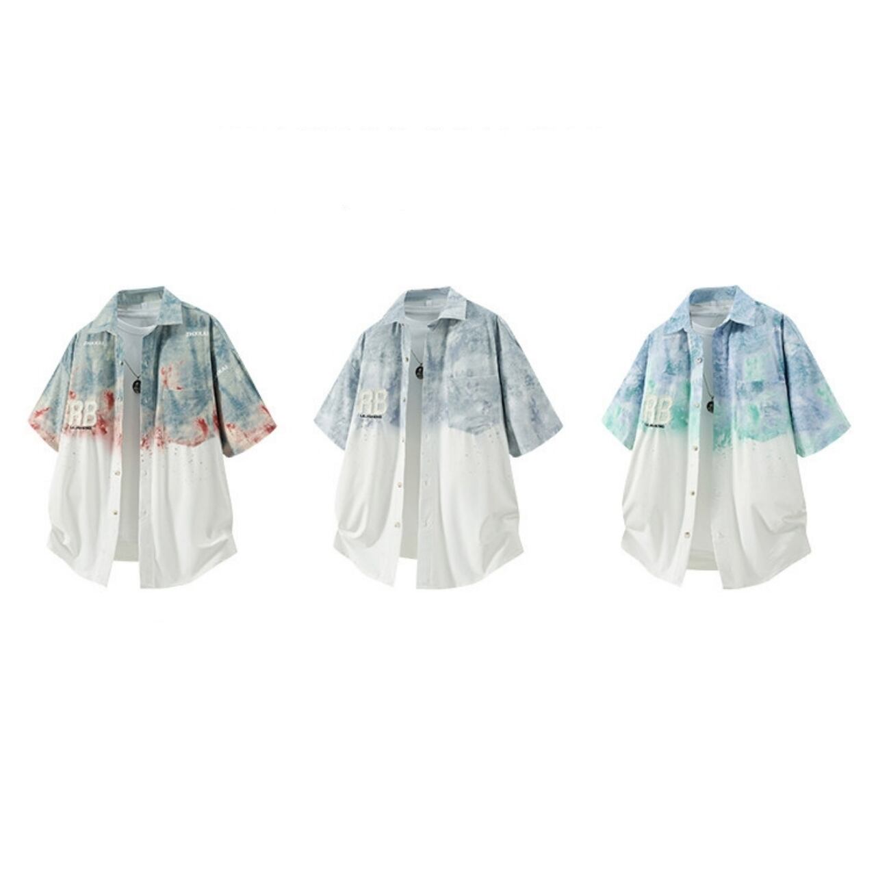 目を引くグラデーションと英字ロゴがデザインされたシャツです。