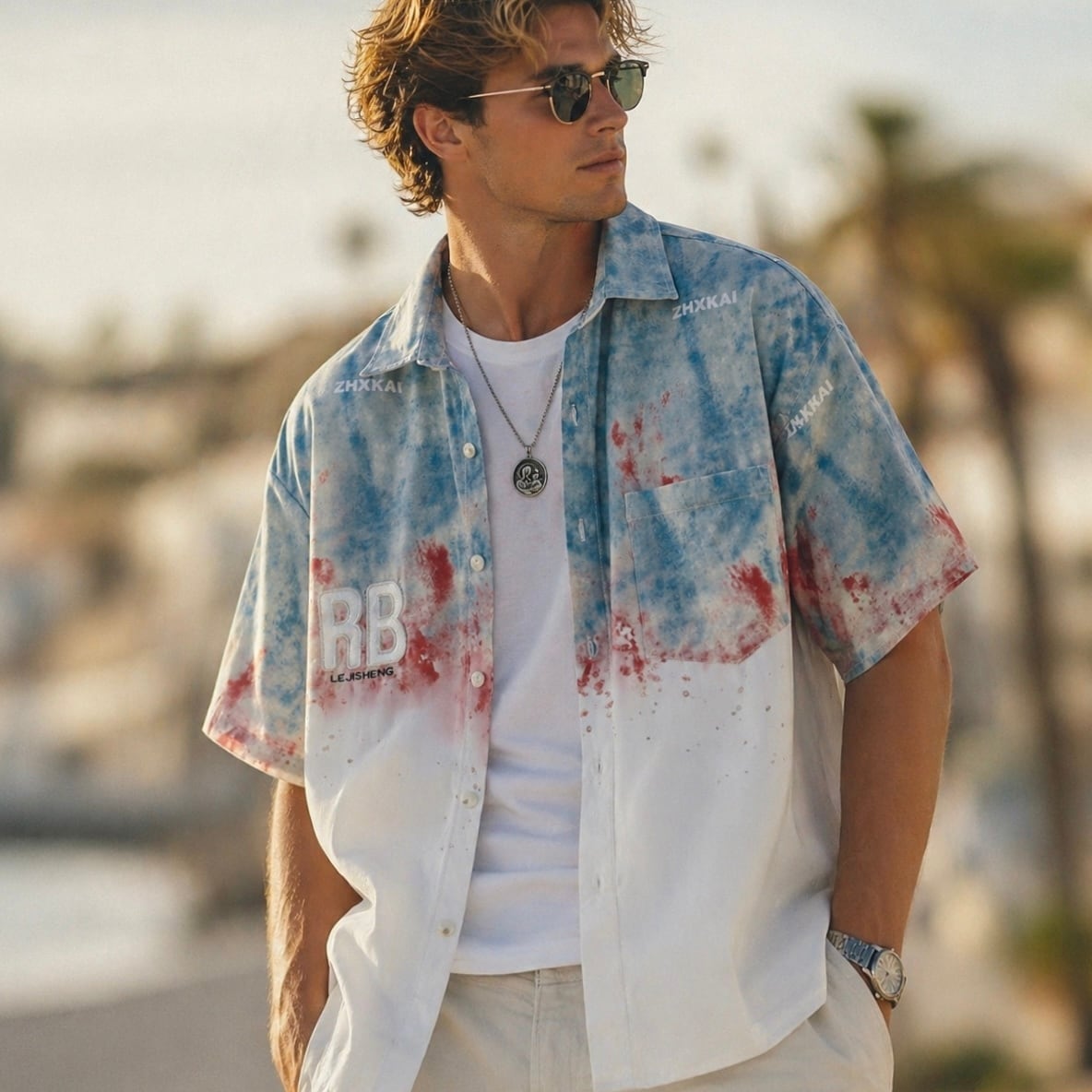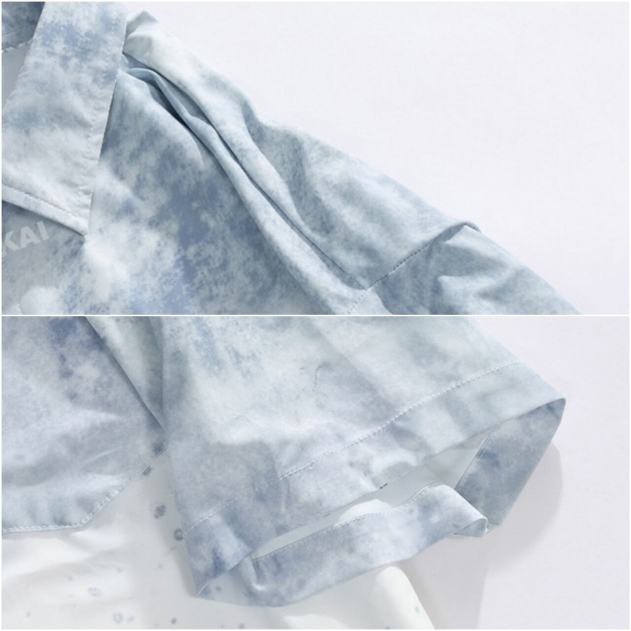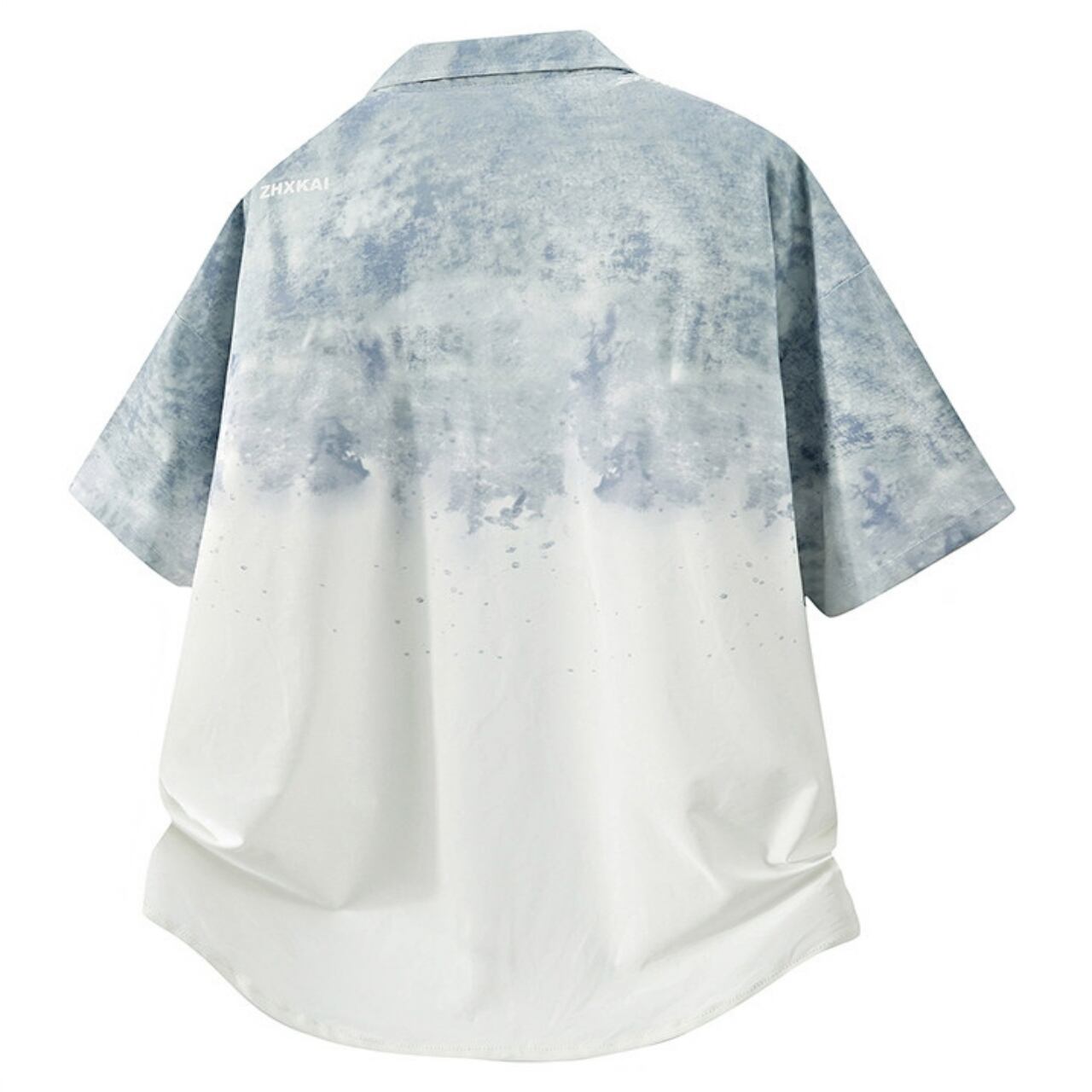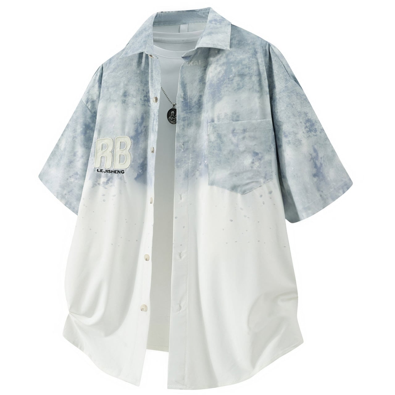 目を引くグラデーションと英字ロゴがデザインされたシャツです。